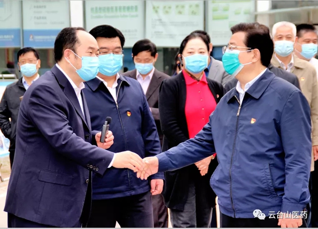 2020年4月17日上午,焦作市人民政府市長徐衣顯帶領(lǐng)五大班子領(lǐng)導(dǎo)及各縣區(qū)主要領(lǐng)導(dǎo)蒞臨焦作市云臺山醫(yī)藥公司指導(dǎo)工作。云臺山醫(yī)藥公司董事長楊文成向徐市長詳細(xì)介紹了云臺山醫(yī)藥公司的發(fā)展現(xiàn)狀及云臺山醫(yī)藥物流園的發(fā)展規(guī)劃。